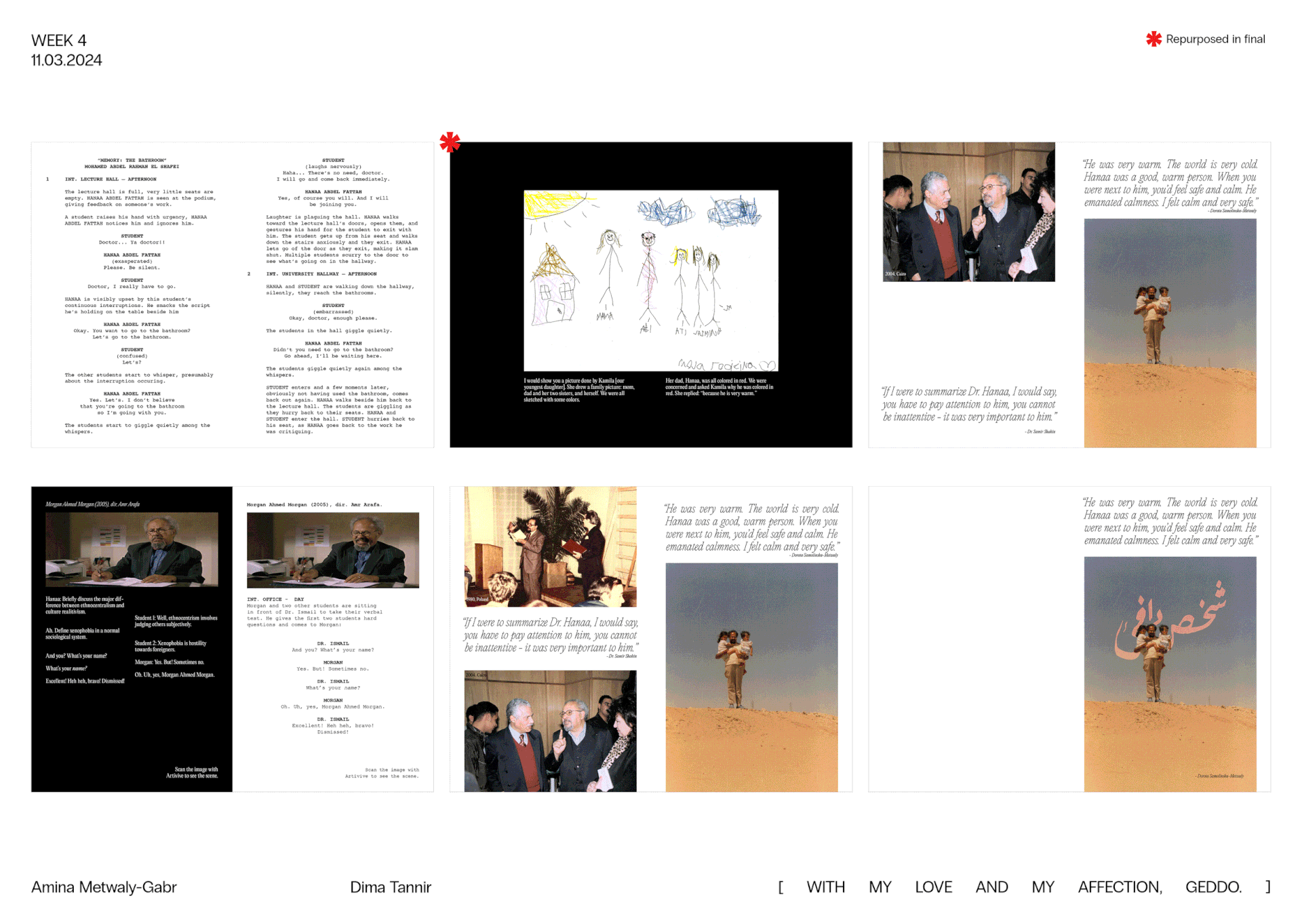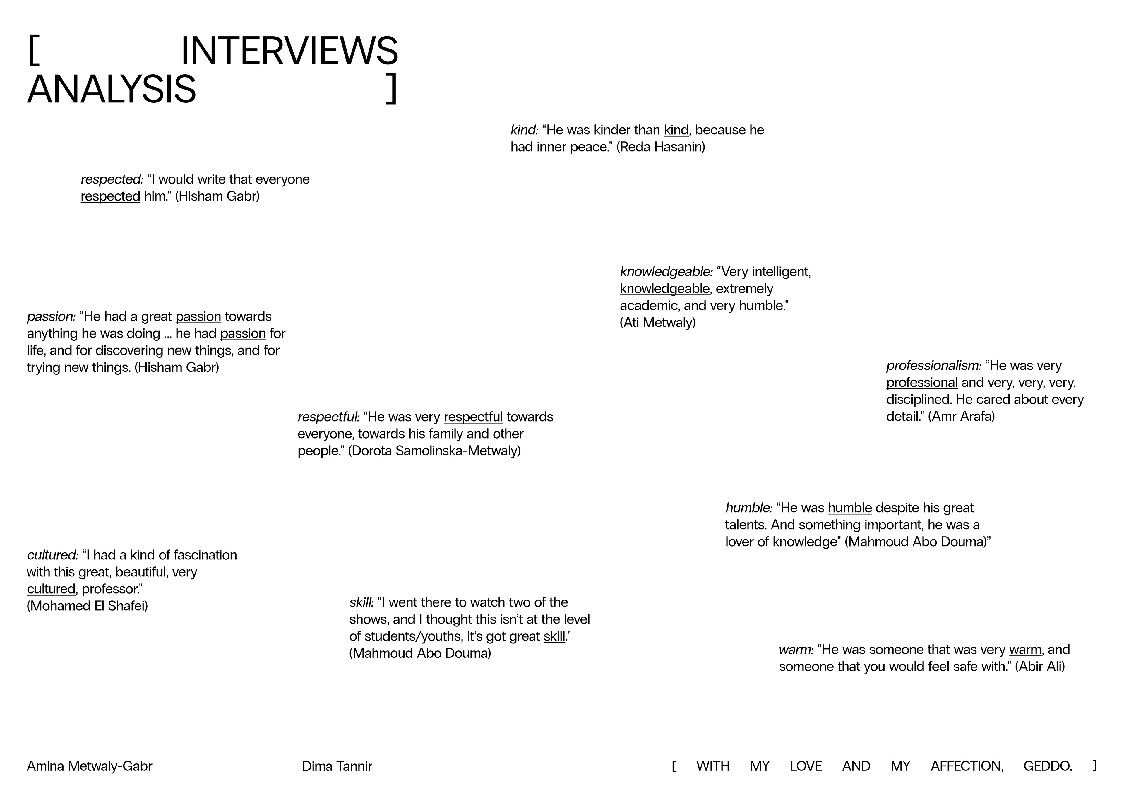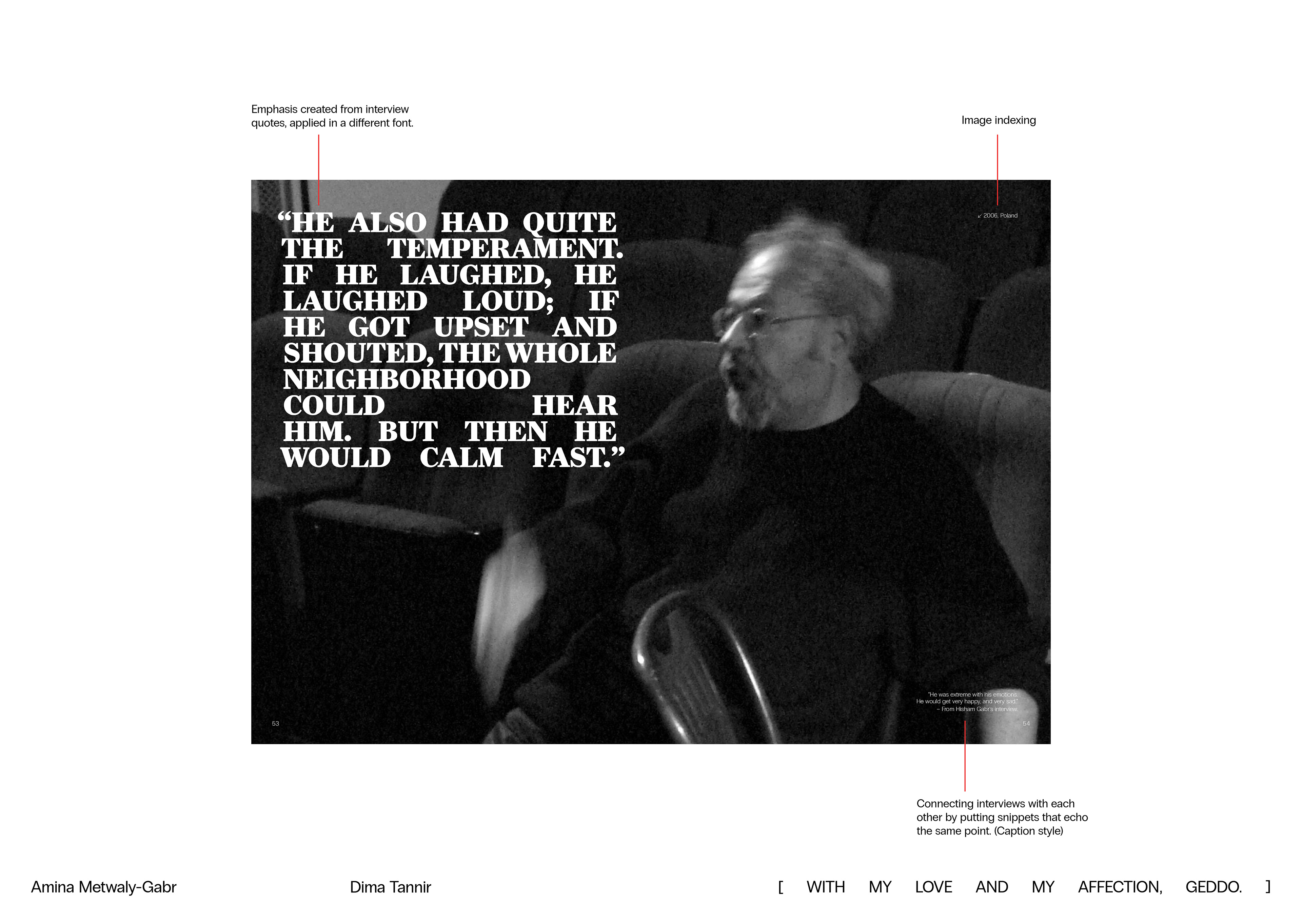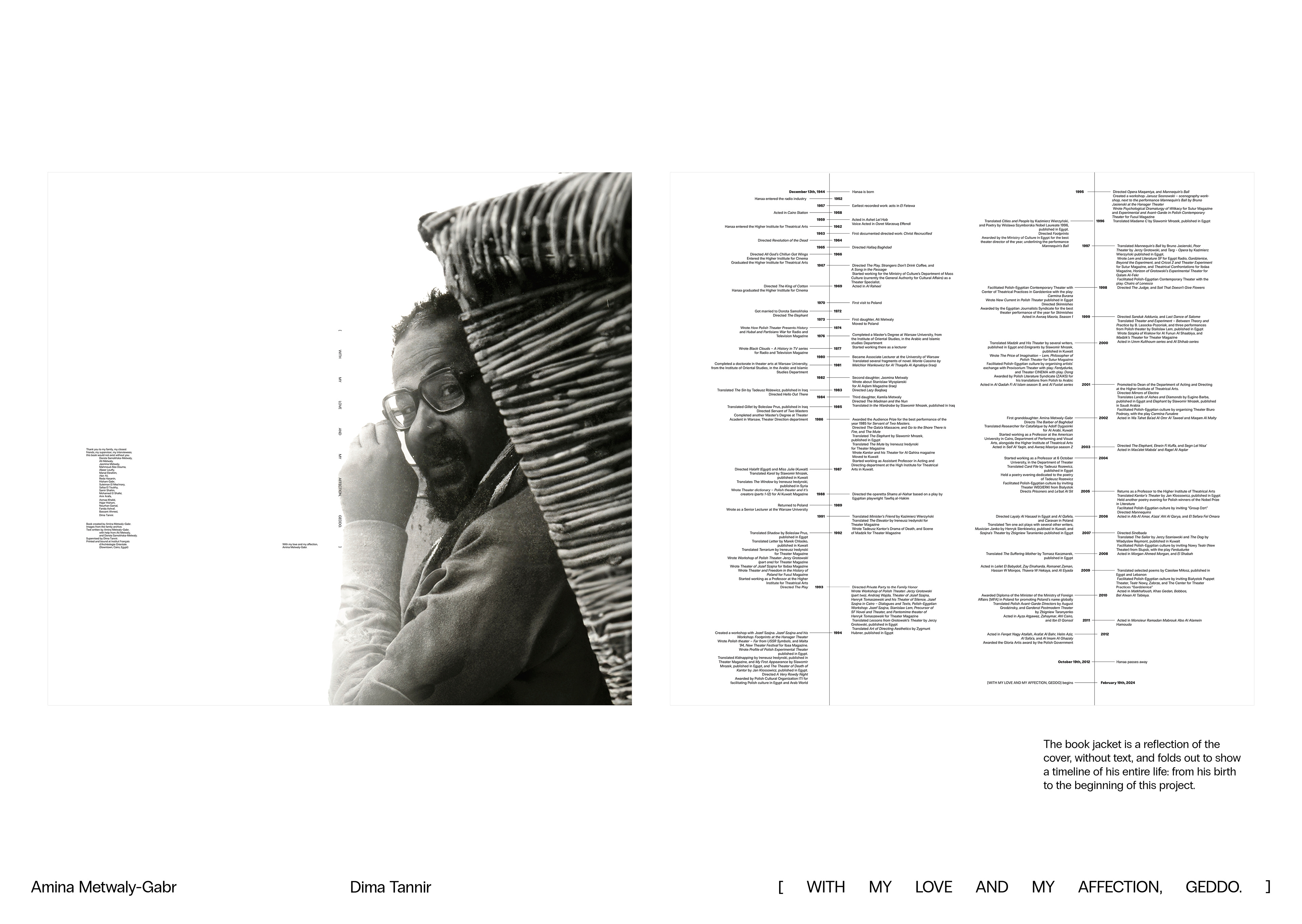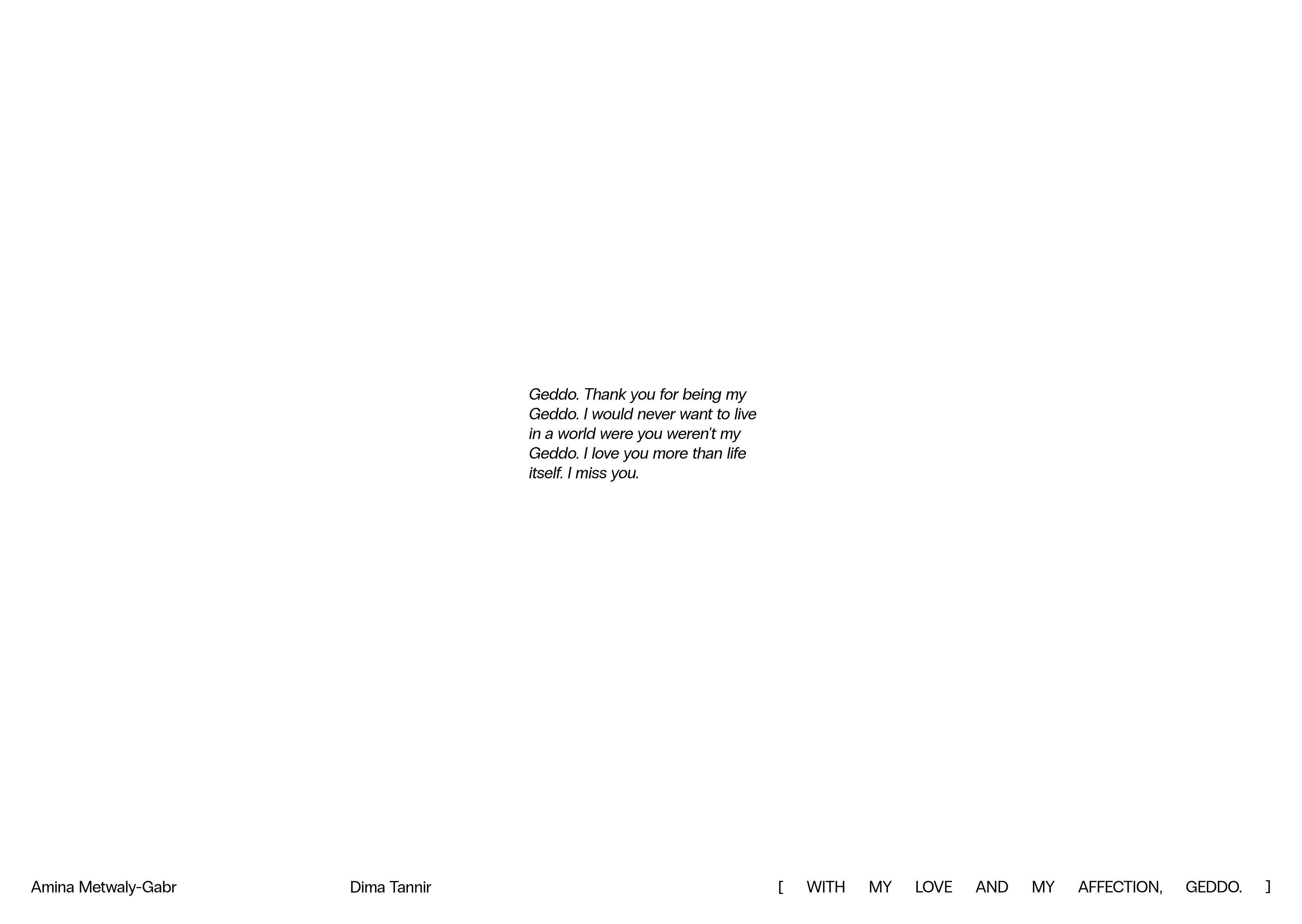 [ WITH MY LOVE AND MY AFFECTION, GEDDO. ] is a book created to honor, celebrate, archive, and display my grandfather's life, through the words of the people that have lived him: family, friends, and colleagues. It's a love letter to every moment he spent with us, and to every moment he continues to spend in our minds, and hearts. Known as an actor, my grandfather was much more than that; he was a thespian, an academic, a critic, a writer, and a translator. This book is a humble attempt, made with love bursting at the seams, to postpone his second death; to preserve him.